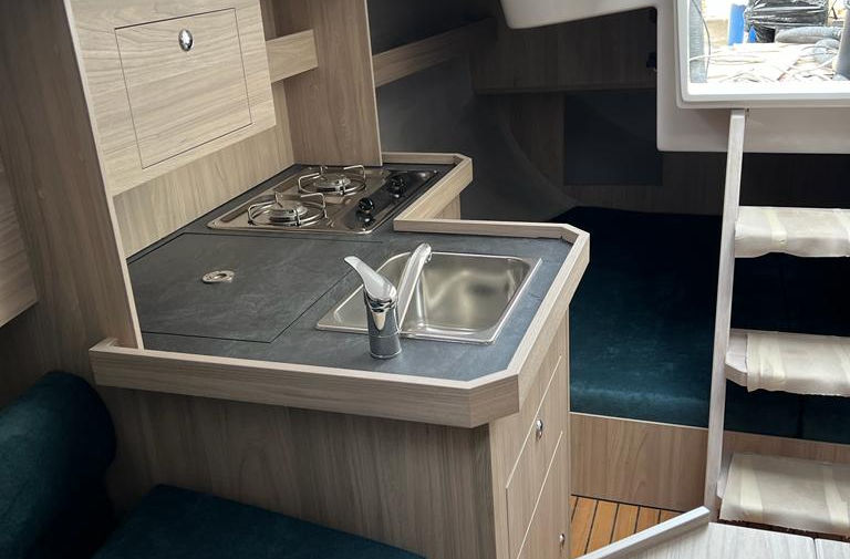 La barca presenta un ottima coperta ben sfruttabile mentre in cabina troviamo due cucce doppie, una dinette (due cucce di emergenza) con tavolo, cucina e un bagno.